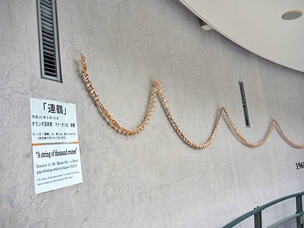 迴旋梯裡,跟著成串金屬打造的紙鶴進到資料館裡。