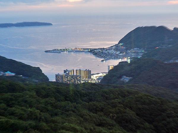 住家、街燈蜿蜒流淌,港口及大型遊輪的燈火,