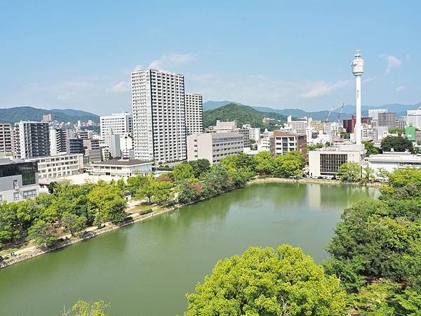 站在「紙鶴塔」展望台,朝遠方望去即可眺望「廣島城」,