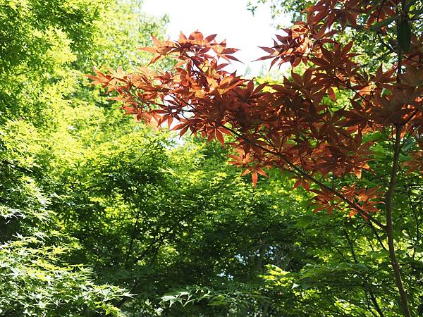 抬頭望著滿天綠楓與松樹交錯,只能期待下回的秋日季節。