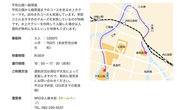 交通:JR 廣島站步行約 15 分鐘,或搭廣島電鐵「縮景園前」站下車即達