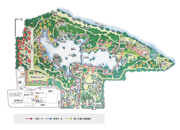 縮景園是以「濯纓池」為中心的迴遊式庭園,