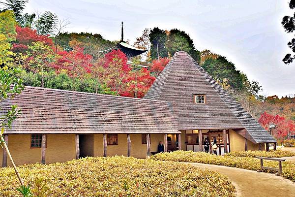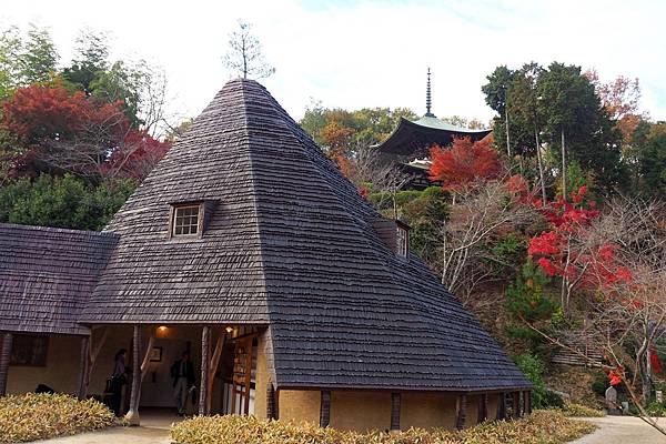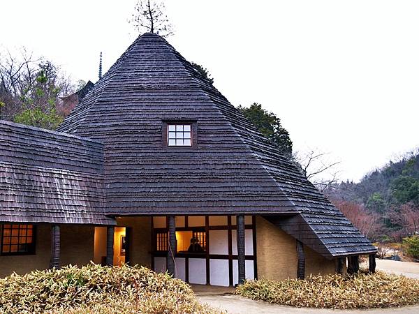 屋頂以日本傳統屋頂的杮葺鋪成;
