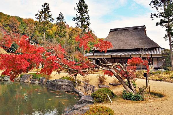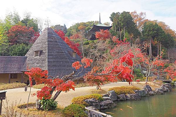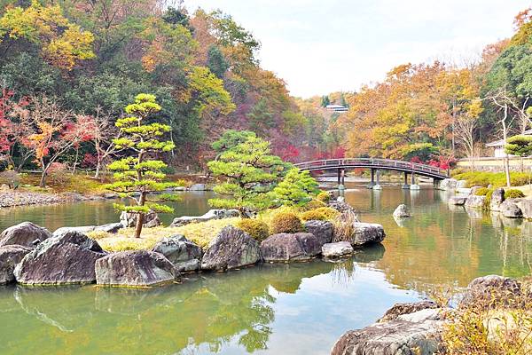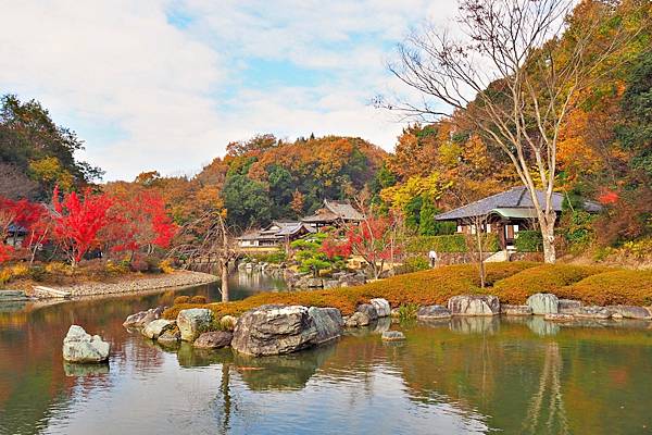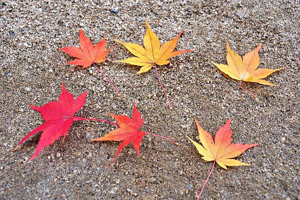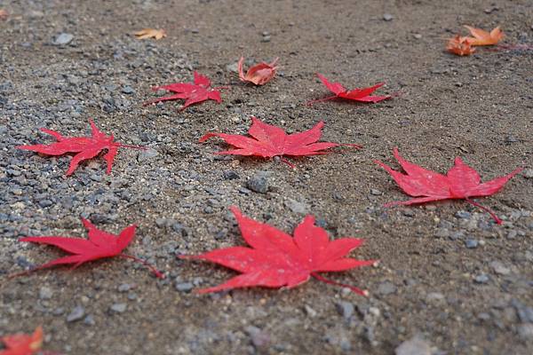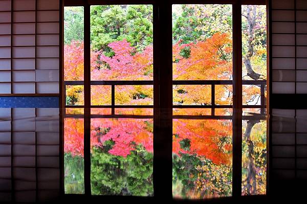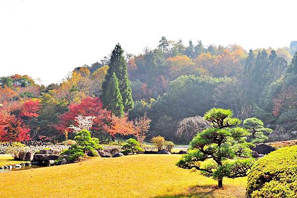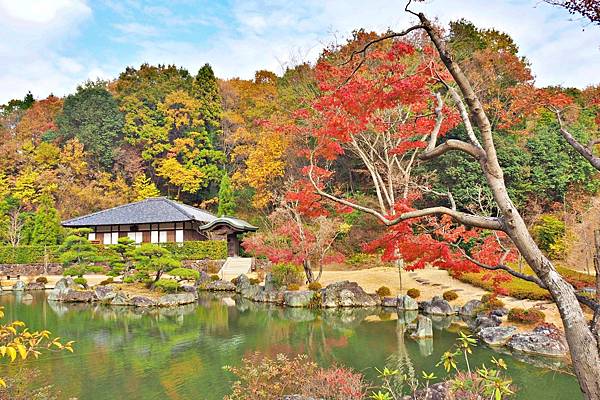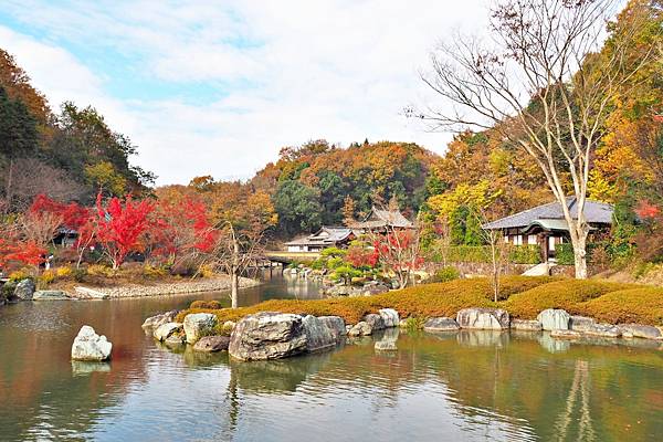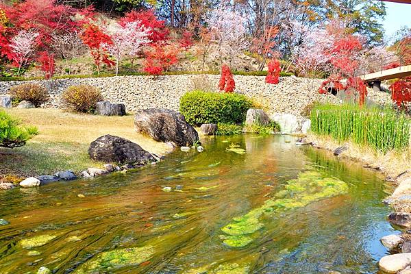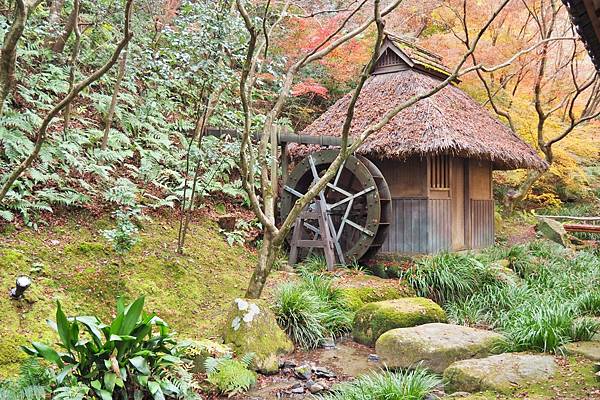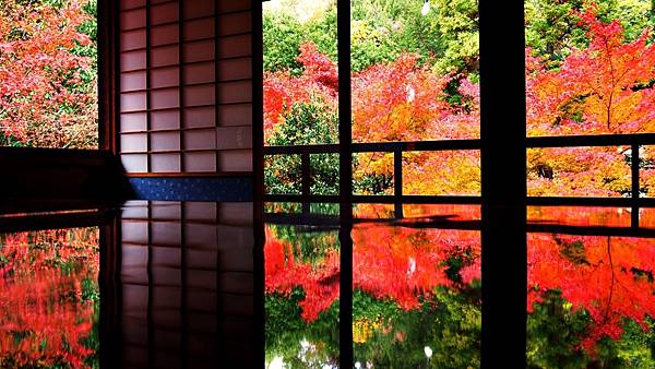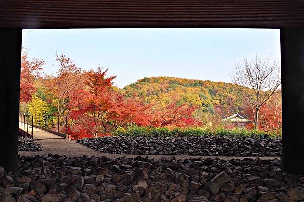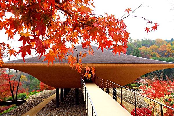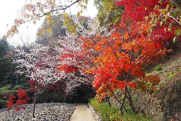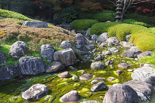 搭配四周的流水石庭、紅葉與十月櫻相間,十分奇幻,