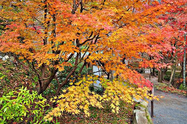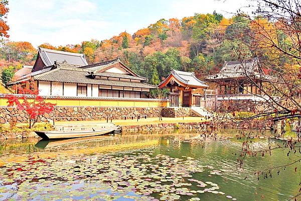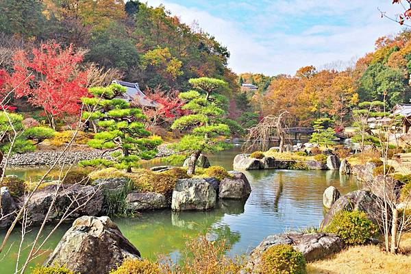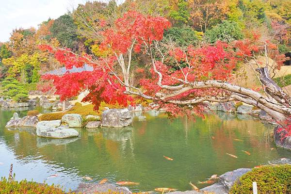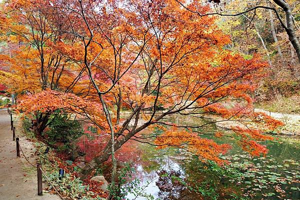 踏入山門,迴遊式庭園的池畔周邊,楓樹滿庭,